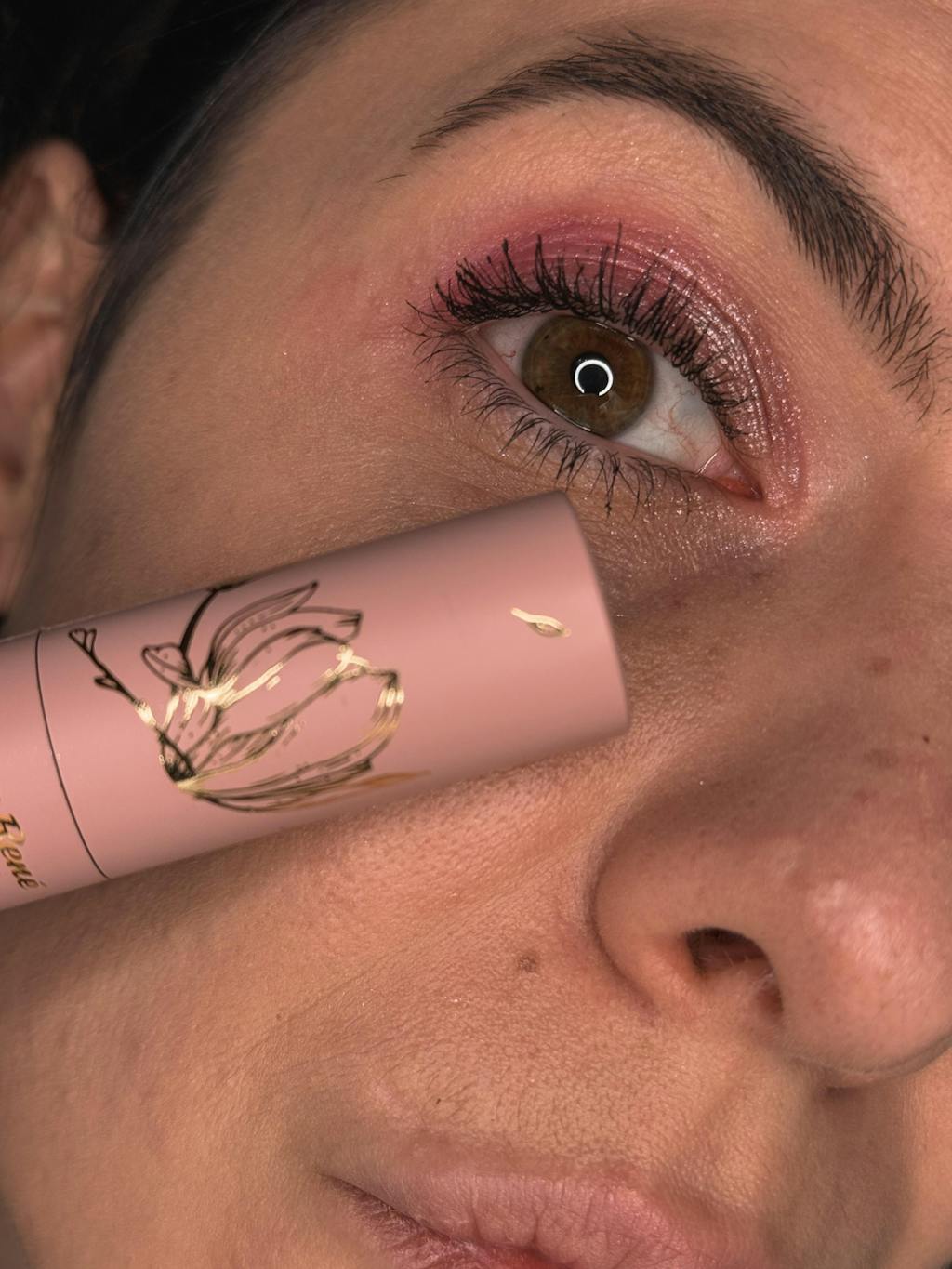 Produsul este imbogatit cu o formula cremoasa care contine ulei de argan si ceara naturala de orez, cu ajutorul carora se hranesc si se regenereaza genele in timpul aplicarii machiajului.