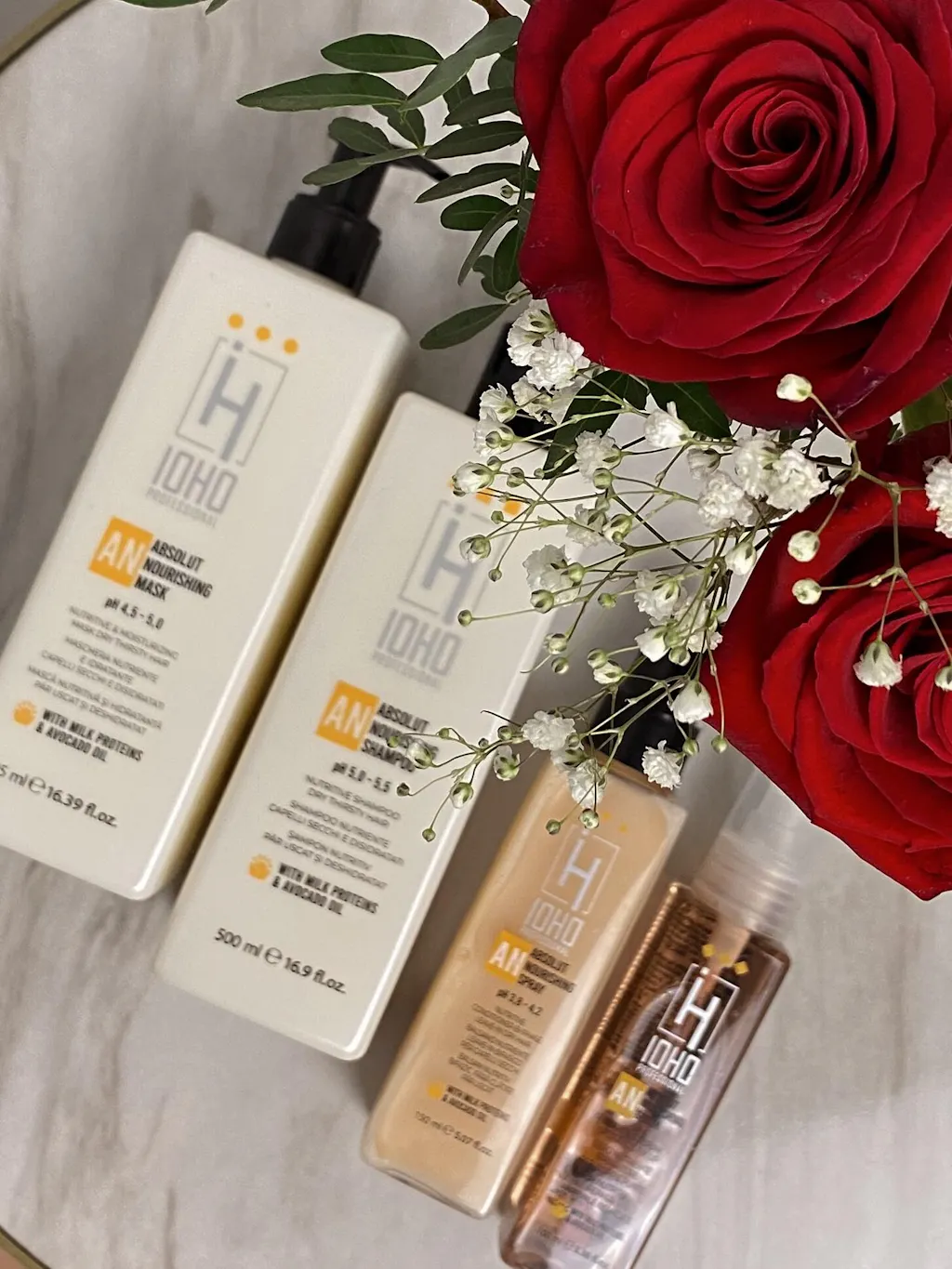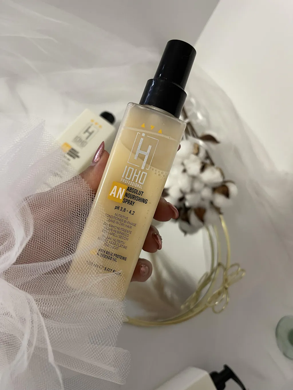 Folosesc balsamul leave-in Absolut Nourishing Bi-Phase de la HNI Cosmetice și îmi place super mult 💛