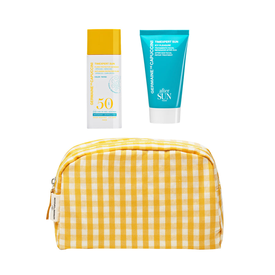 Set Facial Protectie Solara si Reparare cu Geanta - Timexpert Sun Anti-Ageing Protective Fluid Color Tinted 50ml + Repairing After Sun Facial Treatment 50ml Summer Kit - PP Germaine de Capuccini