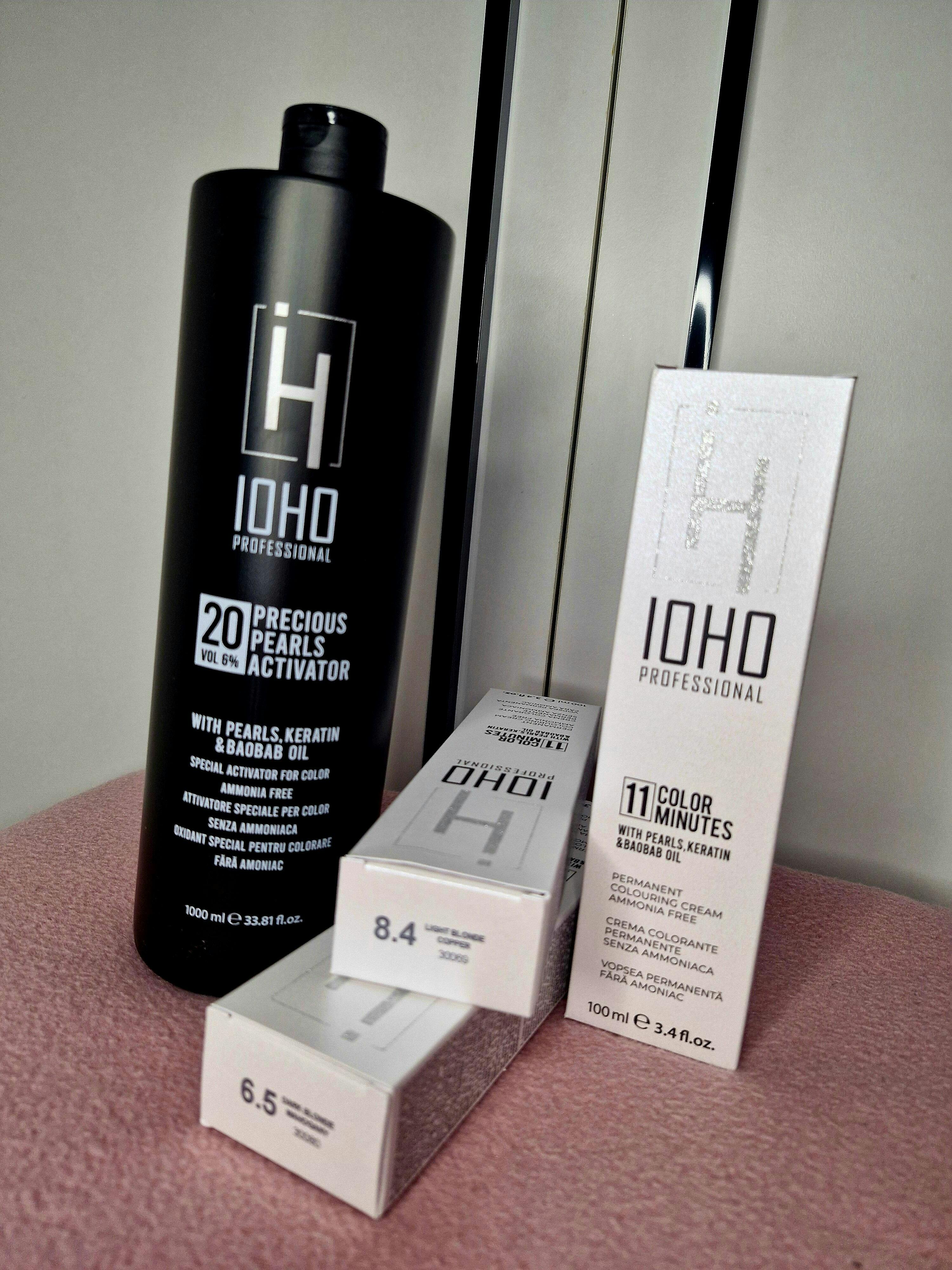 Pentru tonere (mix 1:2) se amestecă 50 ml IOHO COLOR 11 MINUTES cu 100 ml IOHO ACTIVATOR 3,5/10 vol. timp de acționare 3-11 minute.